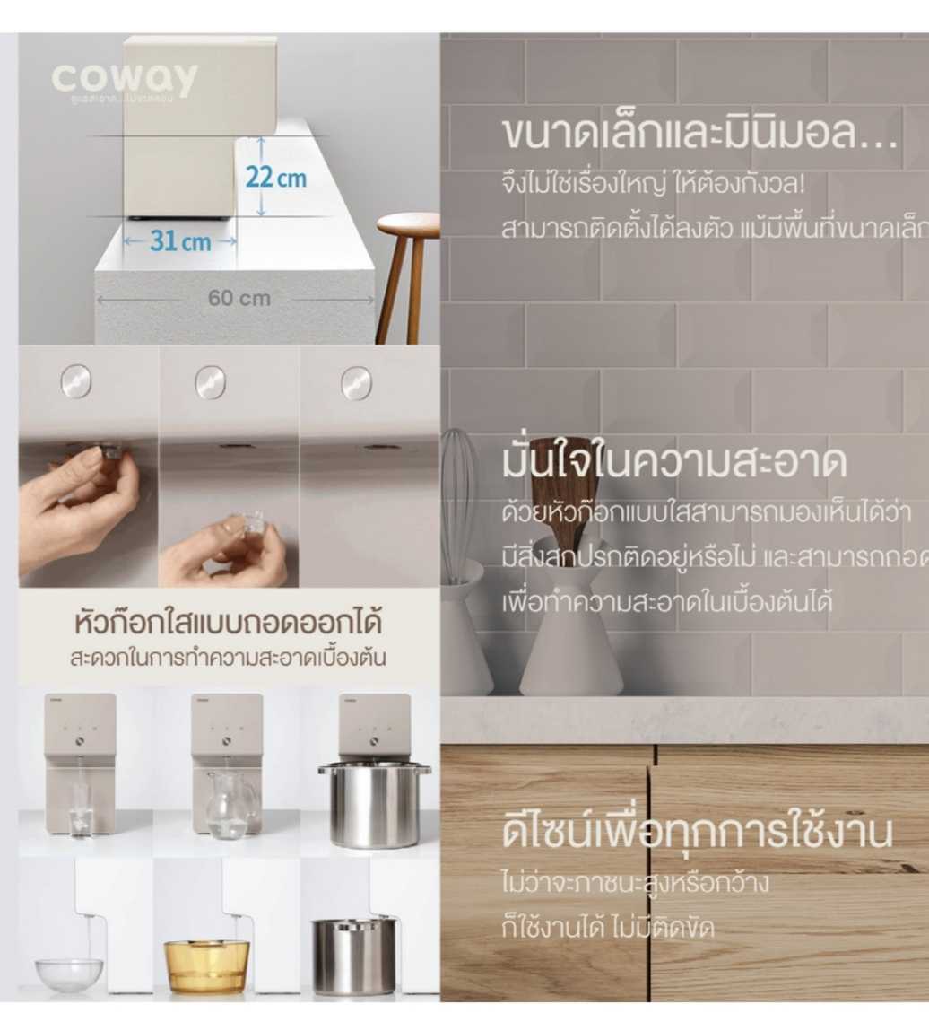 เครื่องกรองน้ำดีไซน์สวยจากโคเวย์ แม้จะมีขนาดที่เล็กกะทัดรัด แต่ก็ยังคงคุณภาพและประสิทธิภาพในเรื่องของความสะอาด ด้วยมาตรฐานแบรนด์อันดับหนึ่งจาก "เกาหลี"